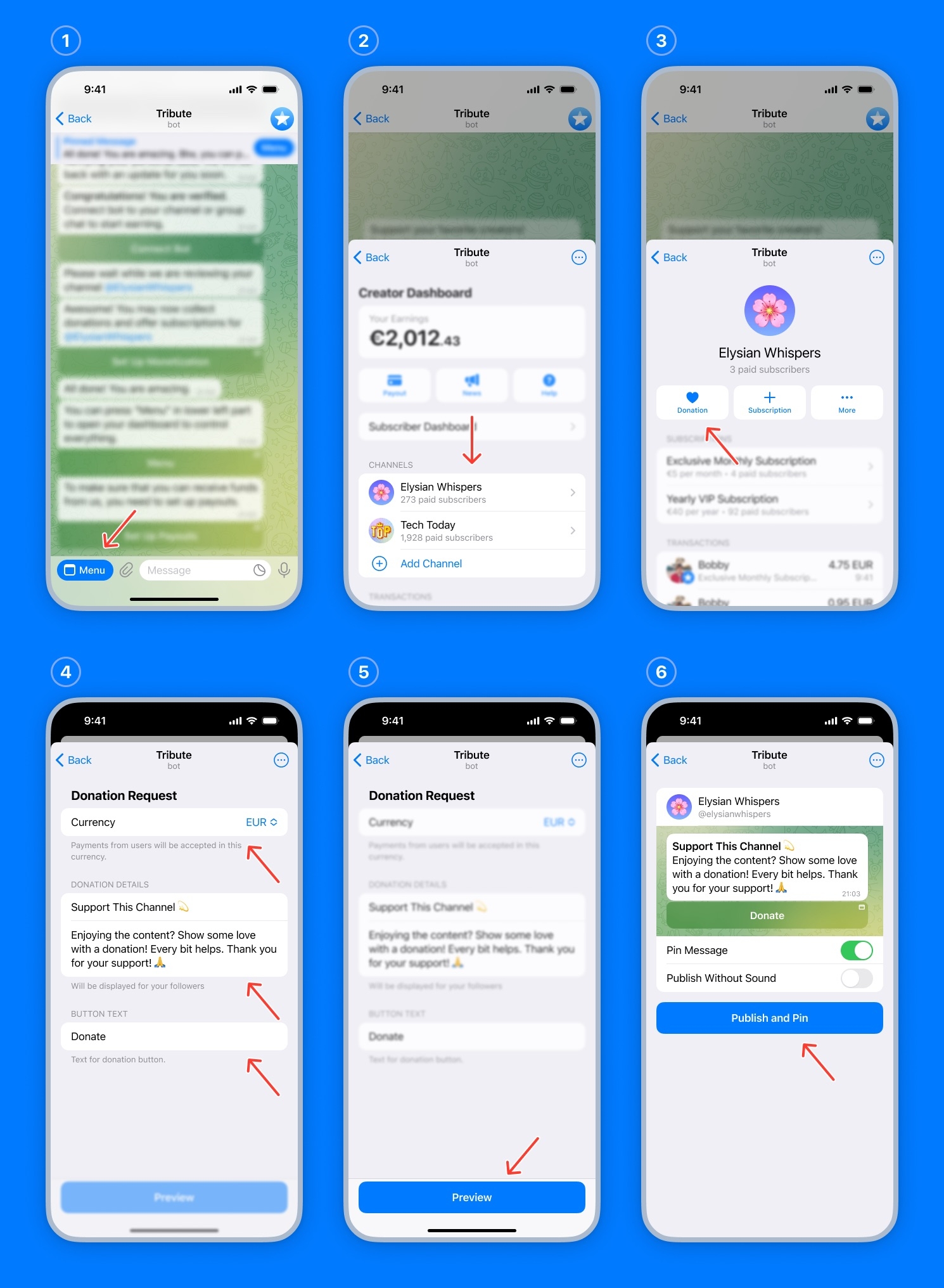 If necessary, customize "Pin donate to channel" and "Publish without sound".