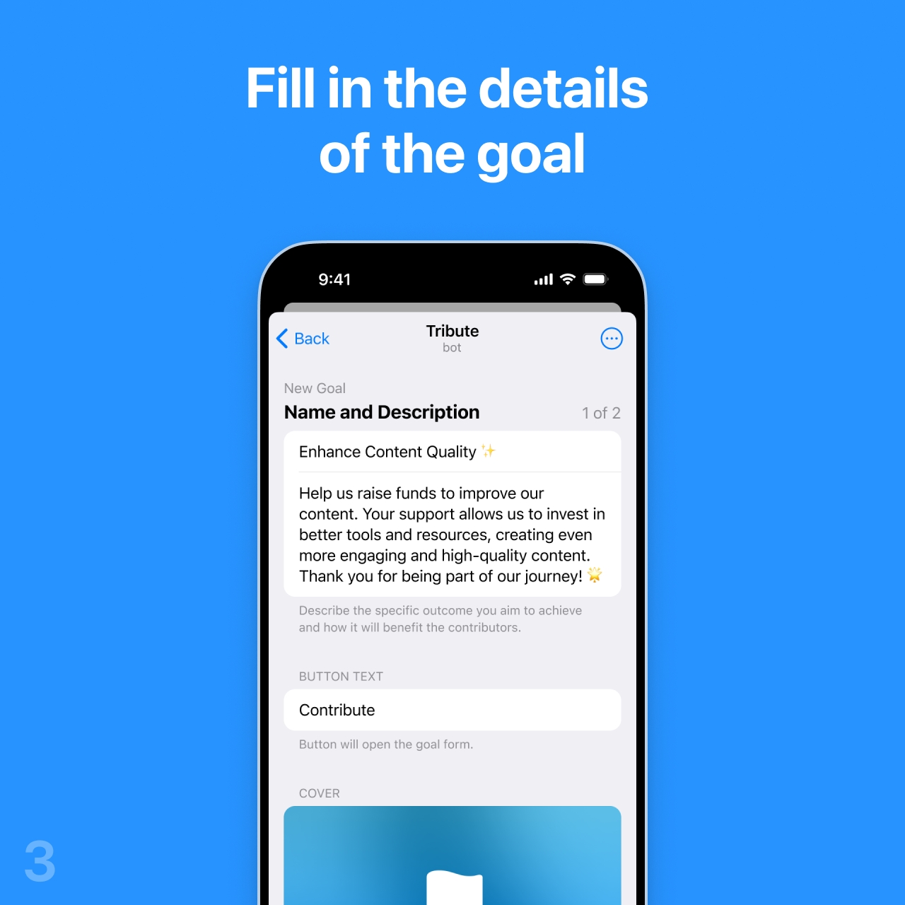 Fill in all the necessary details: title, description, button text, and upload a cover image if needed.