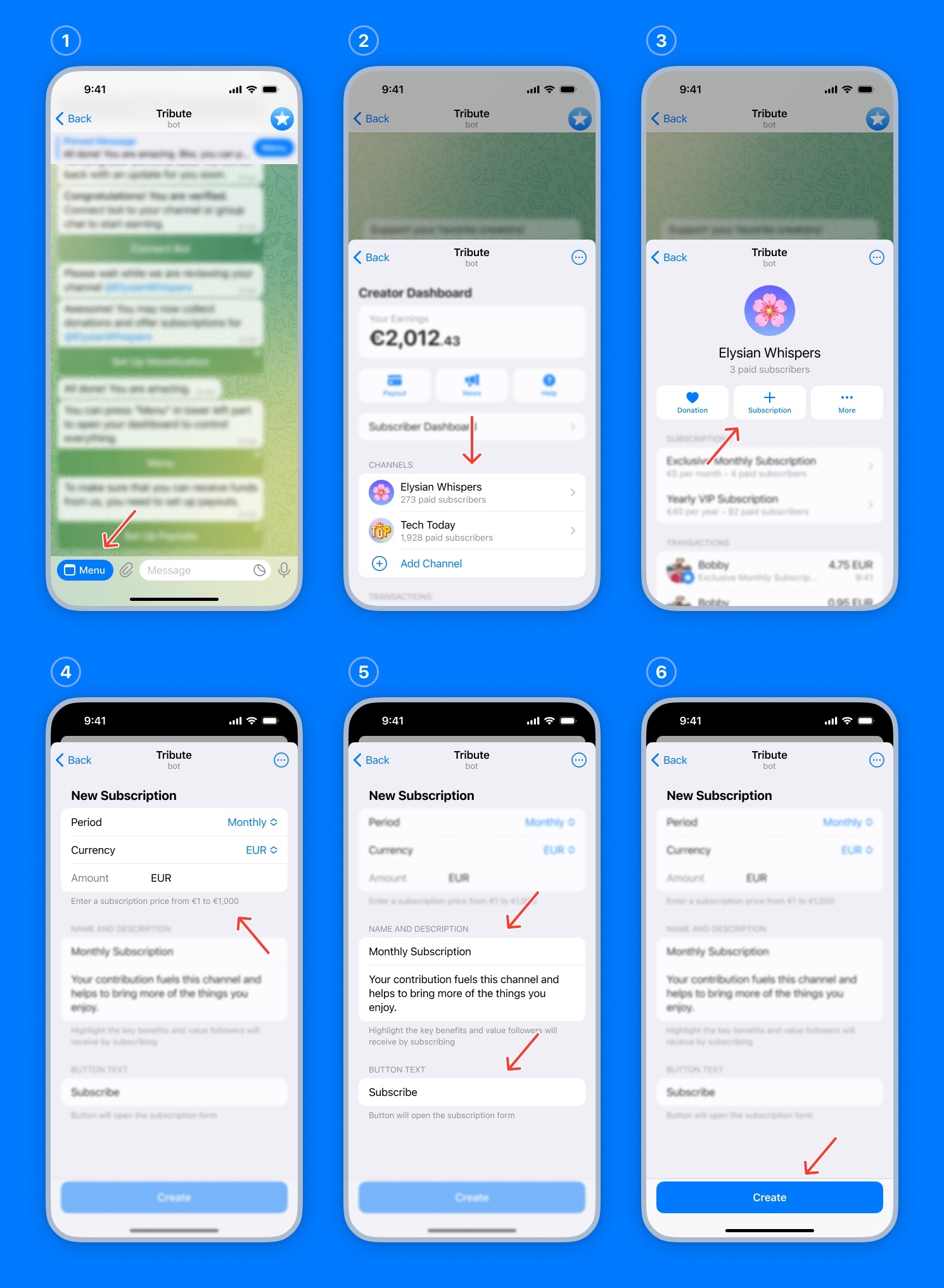 Specify the period (one-time, weekly, monthly or yearly), amount and currency of the subscription.