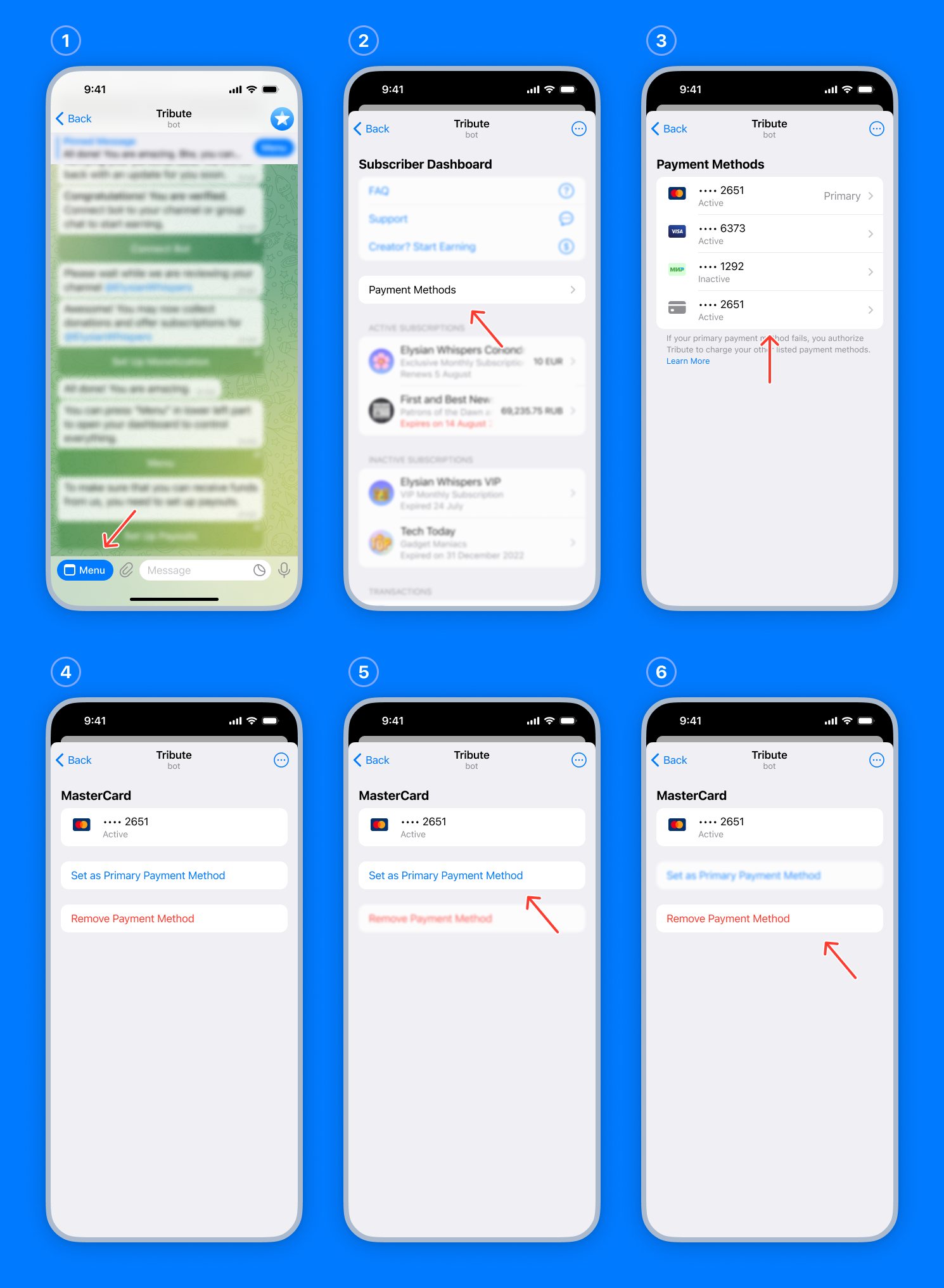 Open «Menu» in the Tribute bot.